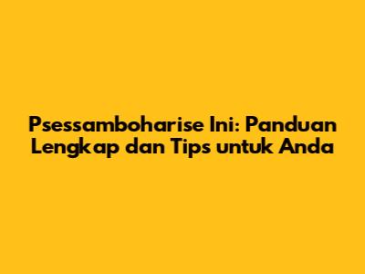 Psesamboharise Ini: Panduan Lengkap Dan Tips