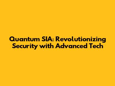 Quantum SIA: Revolutionizing Security With Advanced Tech