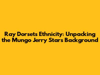 Ray Dorset's Ethnicity: Unpacking The Mungo Jerry Star's Background