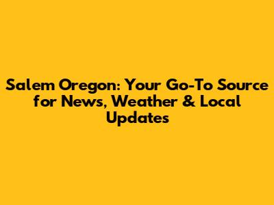 Salem Oregon: News, Weather & Local Updates