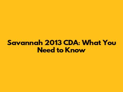 Savannah 2013 CDA: What You Need To Know