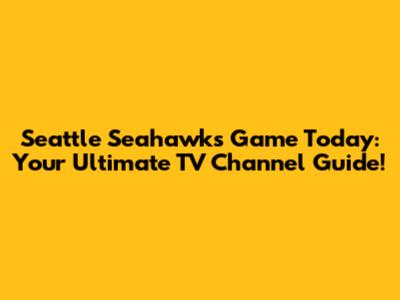 Seattle Seahawks Game Today: TV Channel Guide
