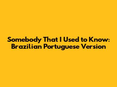 Somebody That I Used To Know: Brazilian Portuguese Version