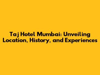 Taj Hotel Mumbai: Location, History, And Experiences