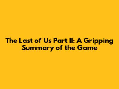 Alright, guys! That’s a wrap. I hope this summary has given you a good overview of The Last of Us Part II. If you haven't played it yet, I highly recommend it. It's a journey you won't forget. Thanks for reading and happy gaming!