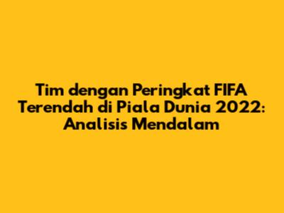 Guys, mari kita selami dunia sepak bola dan lihat lebih dekat peringkat FIFA terendah di Piala Dunia 2022. Piala Dunia selalu menjadi panggung bagi negara-negara terbaik di dunia untuk bersaing memperebutkan gelar juara. Namun, tidak semua tim yang berpartisipasi memiliki peringkat FIFA yang sama. Beberapa tim datang sebagai underdog, dengan peringkat FIFA yang lebih rendah dibandingkan dengan tim-tim unggulan. Artikel ini akan membahas tim-tim dengan peringkat FIFA terendah yang berpartisipasi dalam Piala Dunia 2022, menganalisis performa mereka, dan melihat bagaimana mereka berhasil atau gagal menghadapi tantangan di panggung dunia.