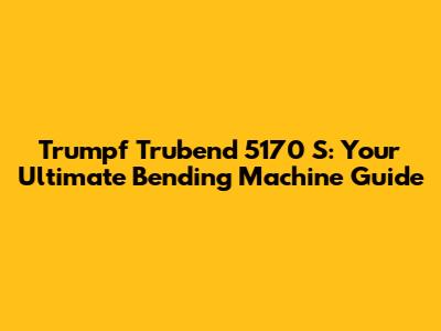 Hey guys! Today, we're diving deep into a machine that's a real game-changer in the metal fabrication world: the Trumpf Trubend 5170 S. If you're in the business of bending metal, you know how crucial it is to have reliable, precise, and efficient equipment. The Trubend 5170 S is exactly that – a powerhouse designed to meet the demanding needs of modern manufacturing. We're going to break down what makes this machine so special, its key features, and why it might just be the perfect addition to your workshop. Get ready to learn all about how this incredible piece of engineering can boost your productivity and the quality of your work. This isn't just about a machine; it's about optimizing your entire bending process.