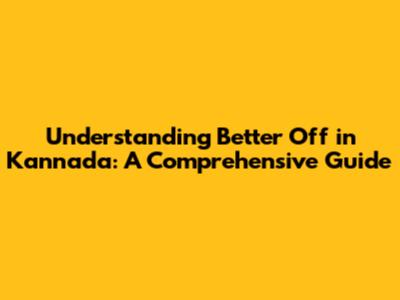 Understanding 'Better Off' In Kannada: A Comprehensive Guide