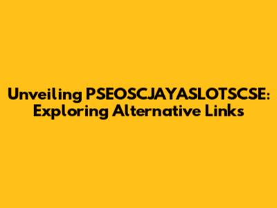 Unlocking PSEOSCJAYASLOTSCSE: Your Guide To Alternative Links