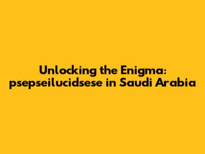 Unlocking The Enigma: Psepseilucidsese In Saudi Arabia