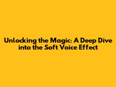 Unlocking The Magic: A Deep Dive Into The Soft Voice Effect