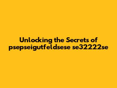 Unlocking The Secrets Of Psepseigutfeldsese Se32222se