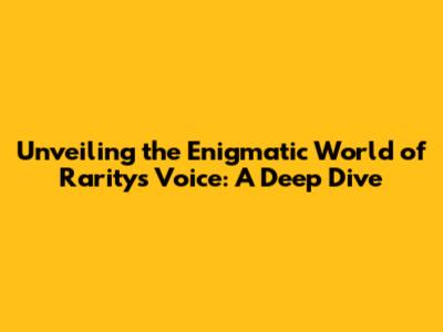 Unlocking The Secrets Of The Rarity Voice: A Comprehensive Guide