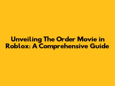 Unveiling The Order Movie In Roblox: A Comprehensive Guide