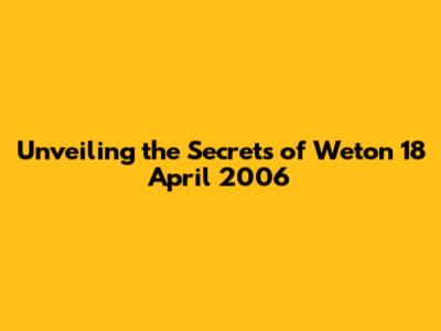 Unveiling The Secrets Of Weton 18 April 2006