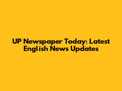 UP Newspaper Today: Latest English News Updates
