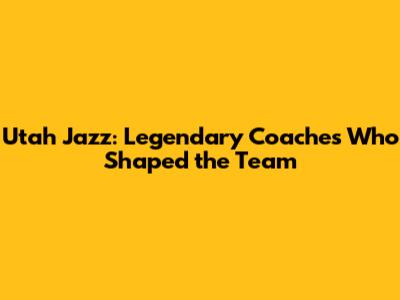 Utah Jazz: Legendary Coaches Who Shaped The Team