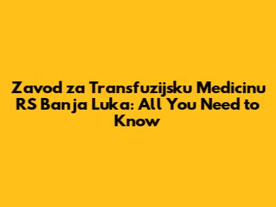 Zavod Za Transfuzijsku Medicinu RS Banja Luka: All You Need To Know