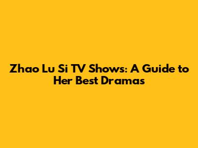 Zhao Lu Si TV Shows: A Guide To Her Best Dramas